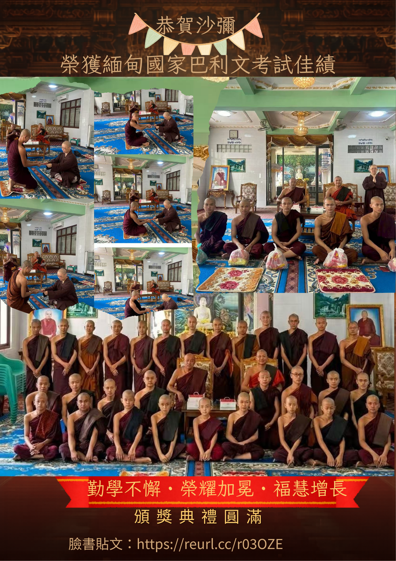 恭賀沙彌榮獲緬甸國家巴利文考試佳績 頒獎典禮圓滿舉行