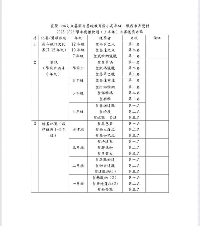 舉辦禮貌週活動及頒發禮貌週得獎沙彌