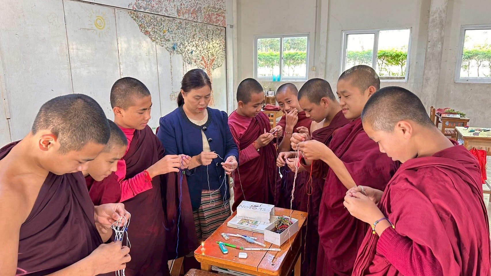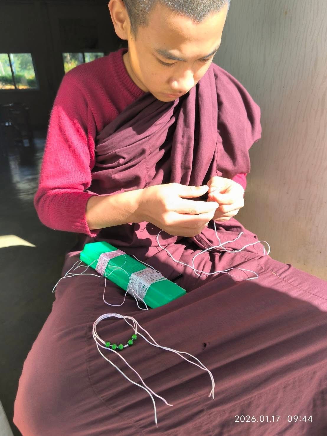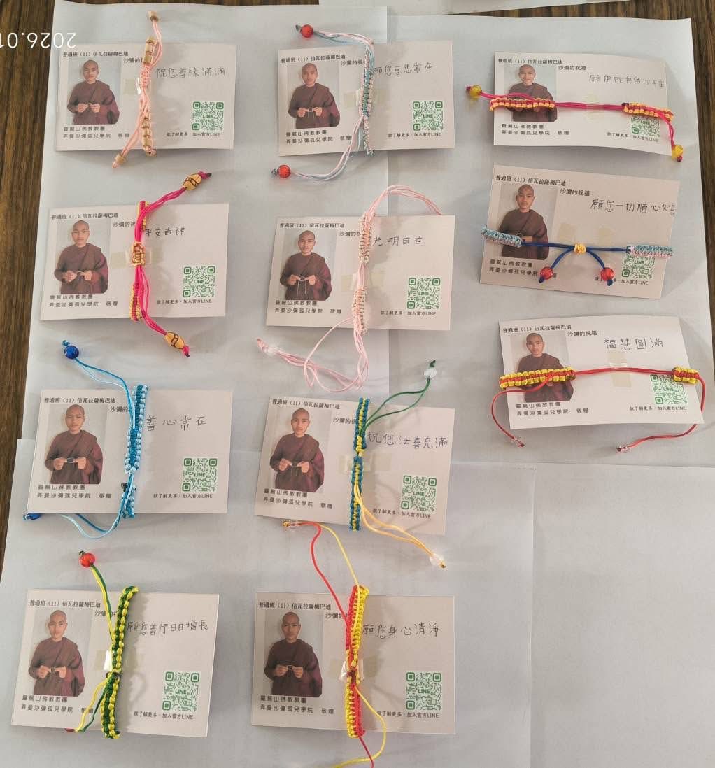 沙彌親手編制結緣手環、誦經祈福護持