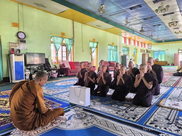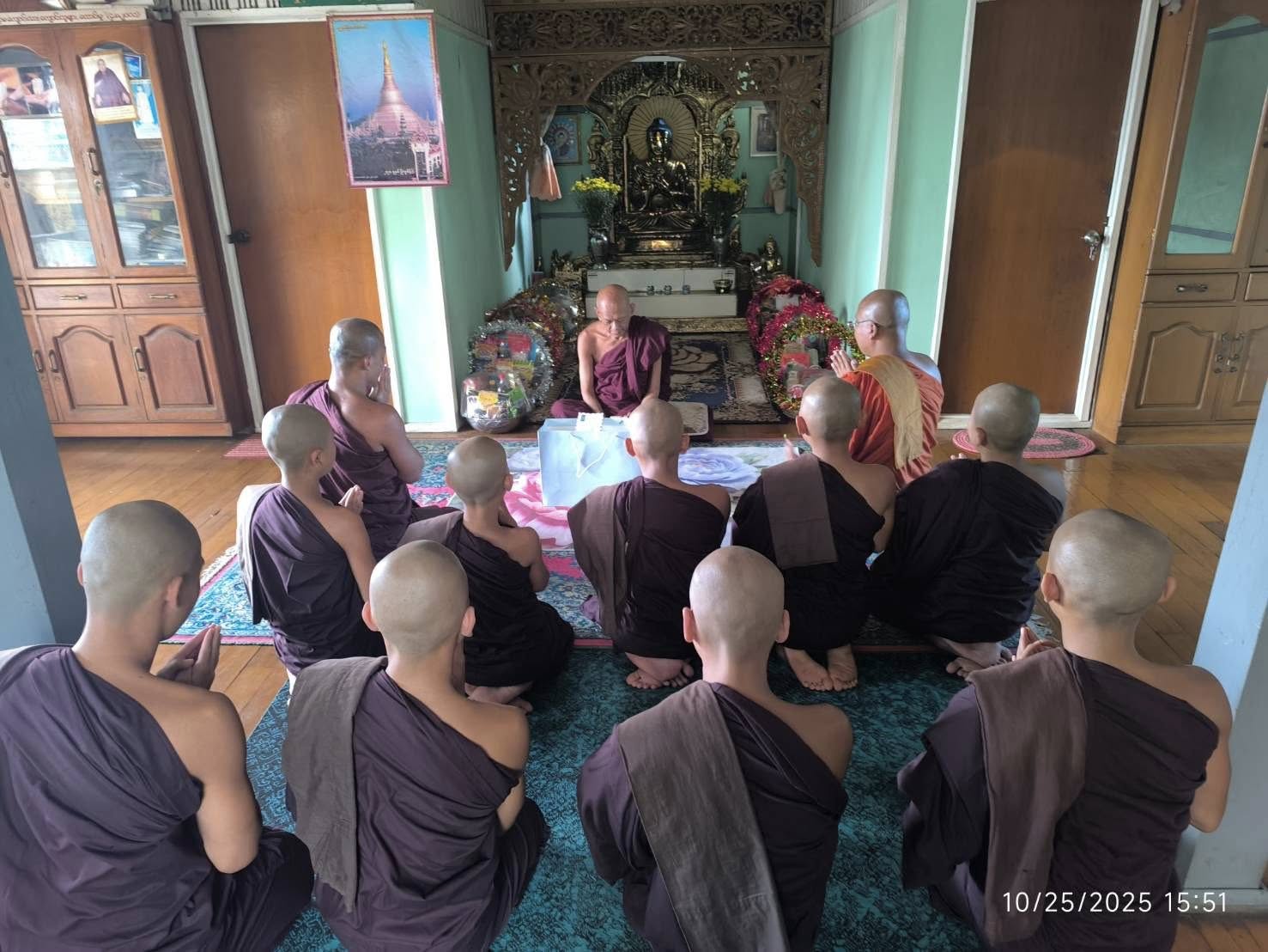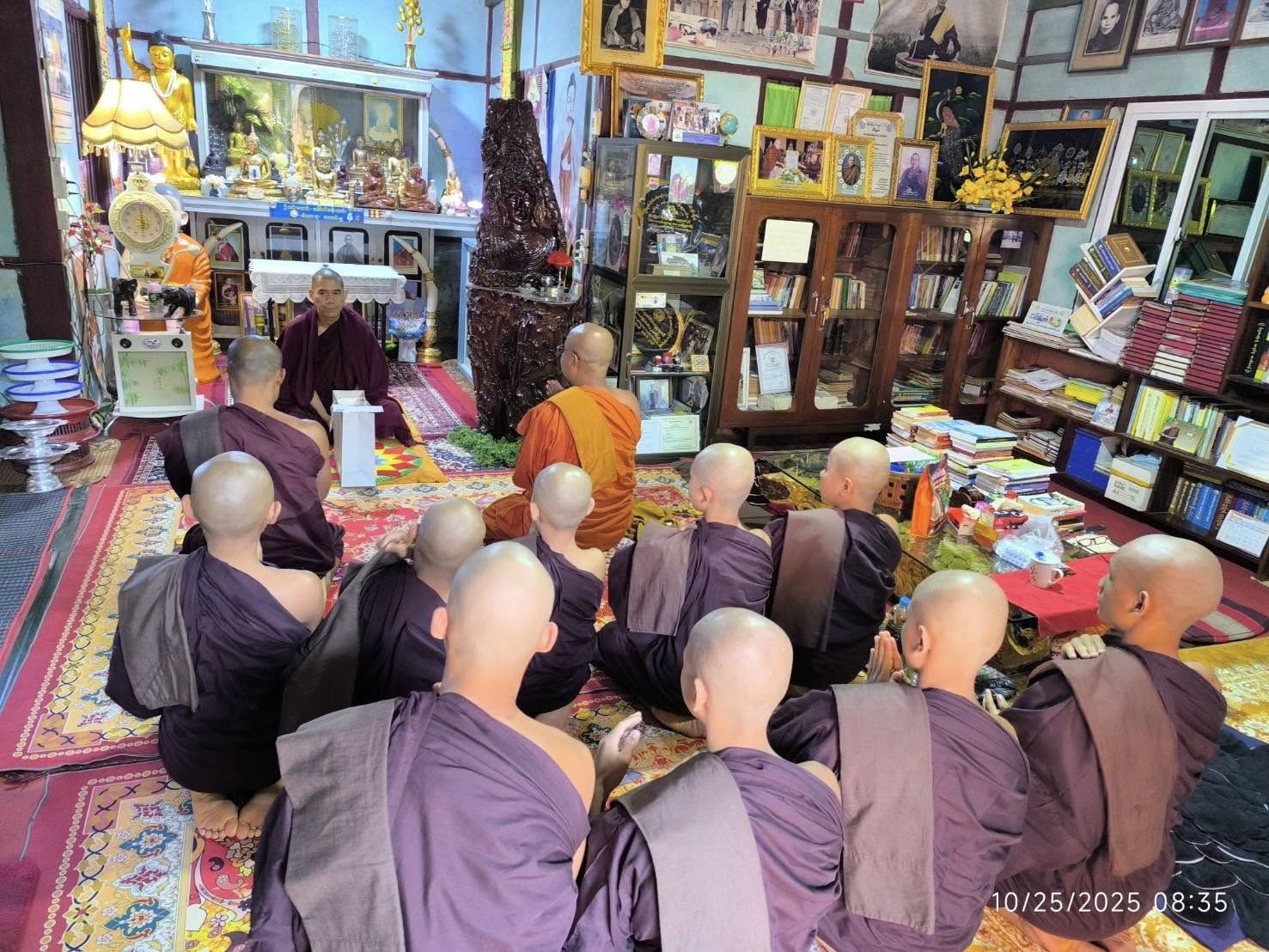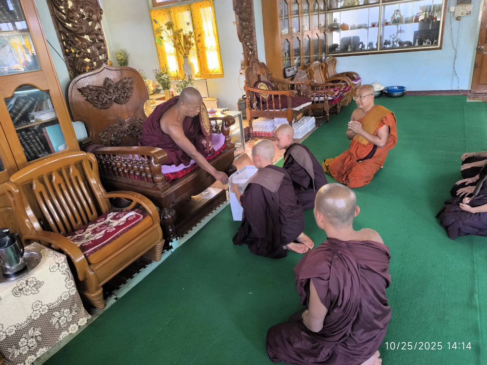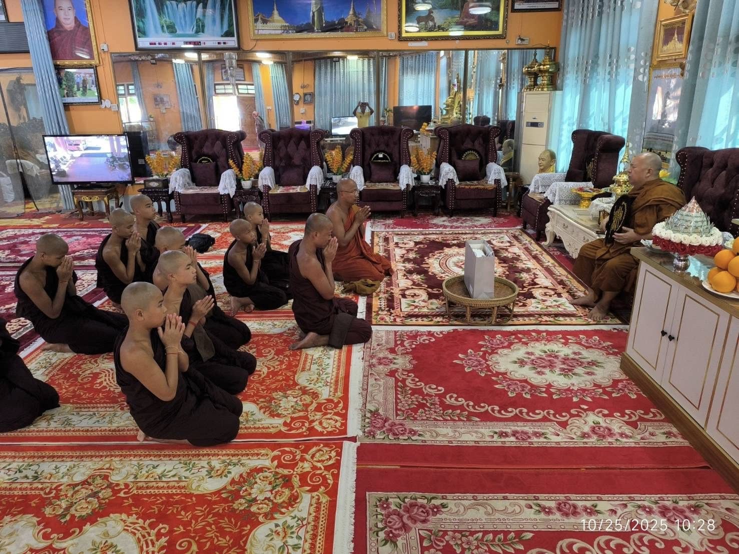 今年安排了九所長老寺院去供養,一早兩位比丘帶領九位沙彌,一一拜訪,頂禮各個寺院的長老,獻上生日祝福,非常殊勝圓滿。